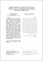 هدف این پژوهش، شناسایی ارزشها ازدیدگاه شهید مطهری و کاربردی نمودن آنها در تربیت جامعه است. بنابراین، پرسشی که مطرح میشود، این است که آیا مسائل و مباحث بنیادین فلسفه که ارزششناسی یکی از مهمترین آنها است، قابل شناسایی هستند؟ اگر پاسخ مثبت است، آیا میتوان این ارزشها را در جامعه نهادینه کرد؟ برای پاسخ به این مباحث، با پژوهش و بررسی کیفی، در آثار و افکار شهید مطهری(ه)، یافتههایی بهدست آمد و درمورد پیشینه ارزششناسی، ماهیت ارزشها، چیستی ارزشها، وجود ارزشها و اقسام ارزشها از حیث ذاتی یا عرضی بودن و نسبی و مطلقبودن آنها بحث گردید. آنگاه به مبحث اصلی یعنی مفهوم ارزش، ریشه ارزش، تفاوت بین ارزش ادراکات اعتباری و حقیقی و تأثیر ارزشها، بهخصوص اخلاقیات، در تربیت از نگاه شهید مطهری(ه)پرداخته شدهاست. نتیجه این پژوهش نشان داد در صورتیکه مربیان جامعه، افکار و آرای استاد شهید مطهری(ه)_که منشعب از تعالیم انسان ساز اسلام وقرآن است_ مَدّ نظر قرار بگیرد و به دانشآموزان القاء شود، جامعه ما مسیر رشد و بالندگی خود را سریعتر طی خواهدنمود و به هدف غایی خود، که همانا کمال است خواهدرسید.