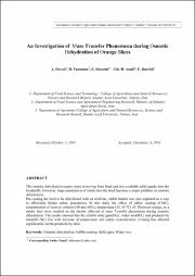 The osmotic dehydration causes water removing from food and also a soluble solid uptake into thefoodstuffs. However, large penetration of solute into the food becomes a major problem in osmoticdehydration.Pre-coating the food to be dehydrated with an artificial, edible barrier was also explored as a wayto efficiently hinder solute penetration. In this study the effect of edible coating (CMC),concentration of sucrose solution (50 and 60%), temperature (35, 45 ºC) of Thomson orange, as amodel fruit were studied on the factors affected of mass Transfer phenomena during osmoticdehydration. The results showed that the soluble solid gain(SG) , water loss(WL) and productivityratio(WL/SG) rise with increase of temperature and solute concentration. Coating has affectedsignificantly on the productivity ratio