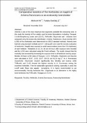Artemia is one of the most important test organisms available for ecotoxicity test. In this study the toxicity of five widely used herbicides formulations including: Paraquat, 2,4-dichlorophenoxy acetic acid (2,4-D), Trifluralin, Glyphosite and Atrazin were compared using ecotoxicity bioindicator, Artemia franciscana. Acute toxicity (48 h LC50) of five herbicides were determined via OECD standard method. Artemia were hatched via standard method and 12 h old nauplii were used for toxicity evaluation of herbicides. Naupliis exposed to Serial concentrations (more than 6 in triplicates) of each herbicid. Mortalities at 12, 24, 36 and 48 hours after exposure were recorded and the LC50 were calculated using Probit software. Results showed that the mortality rate increased along with increasing the exposure time in all herbicide toxicity assays. Besides 48 hours LC50 value of Paraquat, 2,4-D, Trifluralin, Glyphosite and Atarzine calculated at 15.67, 12.93, 11.87, 164.31 and 61.34 mg/L in A. franciscana respectively. Glyphosate showed significantly lesser lethality and toxicity while Trifluralin and 2,4-D showed the highest toxicity in A. franciscana among the examined herbicides. Then for sustainable agricultural activity, especially in areas that runoff water flow to aquatic ecosystems, it is highly recommended to use environmental friendly herbicides like glyphosate as an alternative to highly toxic herbicides like trifluralin, Paraquat and 2,4-D. To the best of our knowledge, this work is the first study comparing the toxicity of highly used herbicides using ecotoxicity bioindicator, Artemia franciscana.