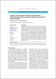 A graphene oxide-terpyridine conjugate (GOTC) based colorimetric and fluorescent nano-chemosensor was synthesized. It showed high selectivity and sensitivity for Fe2+ and Fe3+ ions in neutral aqueous solution over other metal ions such as Li+, Na+, Ba2+, Ca2+, Al3+, Cd2+, Co2+, Cu2+, Hg2+, Mn2+, Ni2+, Pb2+, Zn2+, Cr3+ and Ag+. In absorption spectra, upon addition of Fe2+ or Fe3+, the sensor displayed a peak at 568 nm, by changing the color of the solution from light pink for GOTC to light magenta and deep magenta for Fe3+ and Fe2+, respectively. Also, the fluorescence studies revealed that, Fe2+, Fe3+ and Co2+ quench the emission of GOTC at 473 nm, while other metal ions do not quench the fluorescence of GOTC in solution. Colorimetric and fluorescence techniques could be used for detection of Fe2+ ion concentration at least about 6-10 μM in water solution. The sensing on test paper was also investigated for the naked-eye detection of Fe2+.