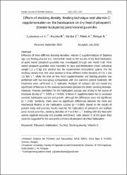 Influence of three different stocking densities, vitamin C supplementation of Daphnia spp. and feeding practice (i.e. mechanical, hand) on the success of dry feed habituation of pond reared pikeperch juveniles was investigated through one month trial. Pond reared pikeperch juveniles were harvested 42 days post-fertilisation (mean individual weight 1.1 ± 0.3g) and stocked into the experimental recirculation system. For the stocking density trial, fish were stocked in three different initial densities of 0.5, 1 and 1.5 fish L-1, while the trial on live food supplementation and feeding practice was performed with two two-group comparisons with one common control treatment. All treatments were performed in 3 replicates. Analysis of variance did not reveal any significant differences in the assessed parameters between the tested stocking densities. However, Pearson correlation for the habituation success was strong in the course of increased density (r2 = 0.829, p = 0.006). Vitamin C supplementation led to increased survival, habituation success and growth, although the differences were not significant (p > 0.05). Similarly, there were no significant differences between the hand and mechanical feeding in the habituation success (p = 0.860). Based on the results of present study and previous results reported for habituation of pikeperch and walleye pond nursed juveniles, stocking densities of 4 to 8 fish L-1, feeding with dry feed with worms supplied manually and possible enrichment with vitamin C of the given food could be suggested for the successful commercial pikeperch dry feed habituation.