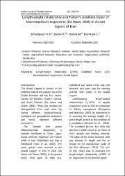 Length-Weight Relationship and Fulton’s Condition Factor of Macrobrachium nipponense (De Haan, 1849) in Anzali lagoon of Iran
