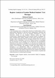 A text messaging service, among other functions of mobile phones, allows mobile phone subscribers to send and receive alphanumeric characters and emoticons. The discourse of the text messages characterizes a kind of interaction, mostly on the boundary between verbal and visual communication. Adopting Halliday's Socio-semiotic Model of Language, this study considered three register variables of filed, mode, and tenor in a text message corpus comprising 2440 text messages collected from 122 medical students at Ahvaz Jundishapur University of Medical Sciences to investigate how the discourse of text message can be affected by the sociolinguistic dimensions of the context of language use. To that end, text messages were analyzed and categorized in term of the social interaction that constituted the content of the messages. The findings revealed that mobile phone text messaging is an asynchronous mode of communication which is characterized with particular register variables, and there are also pragmatic reasons in addition to the technical restrictions for the creation of this register as its users actively and selectively make use of the resources of spoken and written discourses in constructing the message.