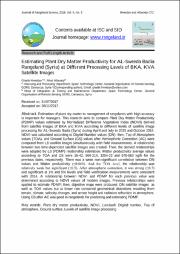 Estimation of plant dry matter to management of rangelands fast as well as high accuracy is important for managers. Research aims to compare Plant Dry Matter Productivity (PDMP) values estimated by Normalized Difference Vegetation Index (NDVI) derived from satellite images BKA, KVA according to different levels of satellite image processing, for AL-Sweeda Badia (Syria), during the April, July of 2015 and October 2014. NDVI calculated according to digital number values (DN) then Top of Atmosphere values (TOA), finally Ground Surface (GS) values after Atmospheric Correction (AC) from L8 satellite image simultaneously with field measurements. Relationship between each two time-dependent satellite images was created. Then relations derived were adopted by L8 PDMP (PDMP) relationship estimation. Matter productivity average values according to TOA and GS was (15-42), (969-214), (3254 -22) and (576-563) kg / h for the previous dates respectively. There was a weak non-significant correlation between DN values and Matter productivity (≤0.063). And for TOA level relationship was relatively weak but significant (≤0.5). After atmospheric correction, it was strong (≥0.7) and significant at (1% and 5%) levels, and field verification measurements were consistent with 2014. Relationship between NDVI and PDMP for each of previous values was determined according to NDVI values of modern images. Previous relationships were applied to estimate PDMP then of objective maps was produced. DN satellite images contain geometrical distortions resulting from terrain, climate, change in velocity and height of sensor and radiation refraction in atmosphere, as well as for TOA values but at lower rate. But using GS after AC was good in rangelands state predicting and estimating PDMP.