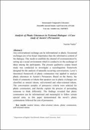 Analysis of Phatic Utterances in Fictional Dialogue: A Case study of Austen’s Persuasion (تحلیل گفتار آغازین در مکالمه داستانی: بررسی موردی «ترغیب» آستین)