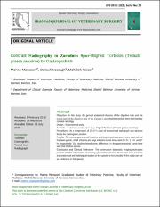 Objective- In this study, the general anatomical features of the digestive tube and the transit time of the digestive tube of the Zarudni's spur-thighed tortoises were examined by contrast radiology.Design - Experimental study.Animals - 4 adult female Zarudni's spur-thighed tortoises (Testudo graeca zarudnyi).Procedures- At a temperature of 25-27°c a set of dorsoventral radiograph was taken to locate the Gastrografin position.Results- The normal gastric, small intestine and large intestine anatomy were obtained and the mean gastric, small intestine and large intestine transit times were 0.2 hr, 2.1 hr, and 27 hr, respectively. Our results showed some differences in the gastrointestinal transit time with that of other species.Conclusion and Clinical Relevance- The noninvasive diagnostic imaging techniques provide detailed information concerning gastrointestinal tract. Since there have not been any anatomical and radiological studies on this species in Iran, results of this study can use as a reference in this species.