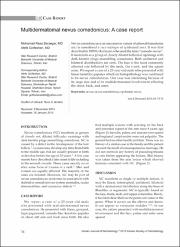 Nevus comedonicus is an uncommon variant of adnexal hamartoma and is considered a rare subtype of epidermal nevi. It was first described in 1895 by Kofmann who used the term “comedo-nevus". It manifests as a group of closely dilated follicular openings with dark keratin plugs resembling comedones. Both unilateral and bilateral distributions are seen. The face is the most commonly affected site followed by the neck, the trunk, and the upper arms. We report a case of a 25-year-old male who presented with linear keratotic papules which on histopathology was confirmed to be nevus comedonicus. Our case was interesting because of its large size and of its multidermatomal involvement affecting the chest, back, and arms.