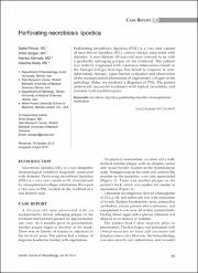 Perforating necrobiosis lipoidica (PNL) is a very rare variant of necrobiosis lipoidica (NL), almost always associated with diabetes. A non-diabetic 43-year-old man referred to us with a gradually enlarging plaque on his forehead. The patient was initially diagnosed with cutaneous tuberculosis based on the histopatholo
