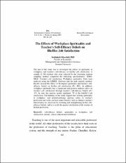 The Effects of Workplace Spirituality and Teacher's Self-Efficacy Beliefs on His/Her Job Satisfaction