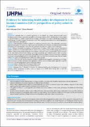 Evidence for Informing Health Policy Development in Low- Income Countries (LICS): Perspectives of Policy Actors in Uganda