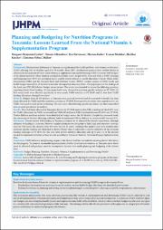 Planning and Budgeting for Nutrition Programs in Tanzania: Lessons Learned From the National Vitamin A Supplementation Program