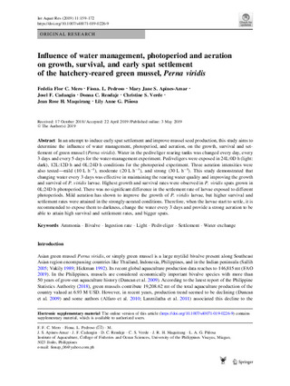 Influence of water management, photoperiod and aeration on growth, survival, and early spat settlement of the hatchery-reared green mussel, Perna viridis