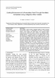 Wind energy is used to rotate a magnetic turbine in order to remove heat from the surface of a photovoltaic (PV) panel. A three-bladed turbine, which rotates with wind energy, has rotational motion underneath the studied PV panel in order to move Magnetic Nano-Particles (MNPs). In addition, effects of the magnetic field strength (B=450-830 mT), rotational velocity of the magnetic turbine (ω), and the concentration of MNPs (ϕ) on the heat removal from the PV panel area were investigated. Results showed that heat removal from PV panel was intensified by motion of pinned MNPs in the ferrofluid via the exerted external force of magnetic field. Concurrent application of available magnetic field along with ferrofluid led to 7.6-24 % temperature reduction for a PV panel. Furthermore, the produced electrical energy of the PV panel was augmented between 2.55-3.13 W depending on ϕ, ω, and B. Moreover, the impact of ω on cooling performance was also investigated, and a significant enhancement to generated power was observed. Eventually, the maximum amount of the produced power (3.13 W), maximum power enhancement percentage (32.63 %), and thermal efficiency (24 %) were achieved for B=830 mT, ω=50 cycles/min, and ϕ=0.05 (w/v).