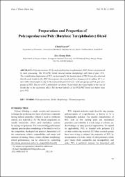 Polycaprolactone (PCL) and poly(butylene terephthalate) (PBT) blend was prepared by melt processing. The PCL/PBT blend showed similar morphology with that of pure PCL.The crystallization temperature of PCL was increased by the incorporation of PBT. It was also observed that the peak height in the DSC thermograms decreased and then disappeared by adding 40 % or more PBT which might be due to the transestrification between –OH end groups of PCL and ester groups of PBT. The size of PCL spherulites was about 13 µm which decreased highly in the case of blends due to the nucleation effect. The thermal stability of the PCL/PBT blend was higher than pure PCL.