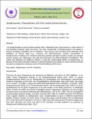 Streptomycetes: Characteristics and Their Antimicrobial Activities