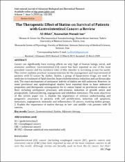 Cancer -can significantly have ruining effects on very high of human beings, social, and economic condition. Gastrointestinal (GI) cancer has been reported as one of the most prevalent cancers and the incidence rates of this disorder is increasing across the world. This review explains practical recommendations for the management and improvement of patients with GI cancer by statins. Statins, a group of lipoproteins drugs, are used in medicine to treatment of lipid disorder, hypercholesterolemia reduction and cardiovascular risk. The exact mechanisms of anticancer activity of statins are still unknown. However, in some preclinical and epidemiological studies have reported them to have anticancer properties and therapeutic consequences for GI cancer based on preclinical evidence of their including antihypoxic processes, anti-invasive, induction of growth arrest and proapoptotic, radiosensitizing, angiogenesis and inhibition metastasis. The main objectives of this review paper are: 1. Explain the importance of sickness understanding and prognostic awareness in patients with cell proliferation, induction cell apoptosis, metastasis, angiogenesis, immunity and inflammatory GI cancers receiving statins groups. 2. Explain the importance of statins therapy in low- and middle- risk patients with GI cancers.