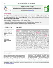 Objective: An experiment was conducted to investigate the effects of citrus brown snail powder as a source of calcium on growth performance, tibia characteristics, immune response and blood metabolites in broiler chickens. Methods: One hundred and eighty 1-day old chicks were randomly distributed into four treatments, each of which had three replicates. Each replicate contains 15 chicks. The treatments were included four inclusion rates of citrus brown snail powder (0, 0.5, 1 and 1.5%) in diets. Results: The results showed that diets supplemented with 2% snail powder improved feed conversion ratio of broilers at 42 days of age (P P P