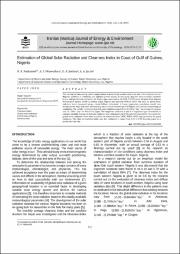 Estimation of Global Solar Radiation and Clearness Index in Coast of Gulf of Guinea, Nigeria