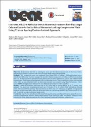 Outcome of Extra-Articular Distal Humerus Fractures Fixed by Single Column Extra-Articular Distal Humerus Locking Compression Plate Using Triceps Sparing Postero-Lateral Approach